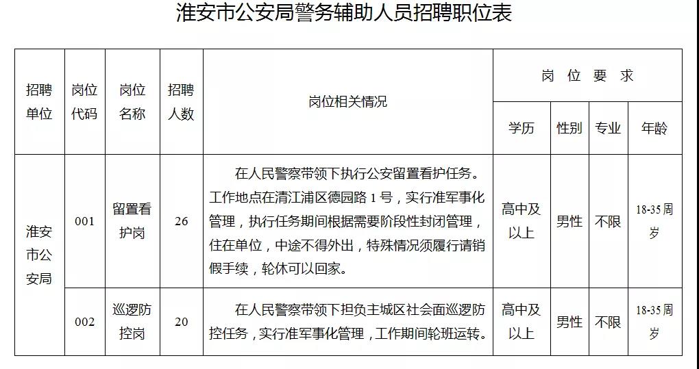 附:《淮安市公安局警務(wù)輔助人員招聘職位表》